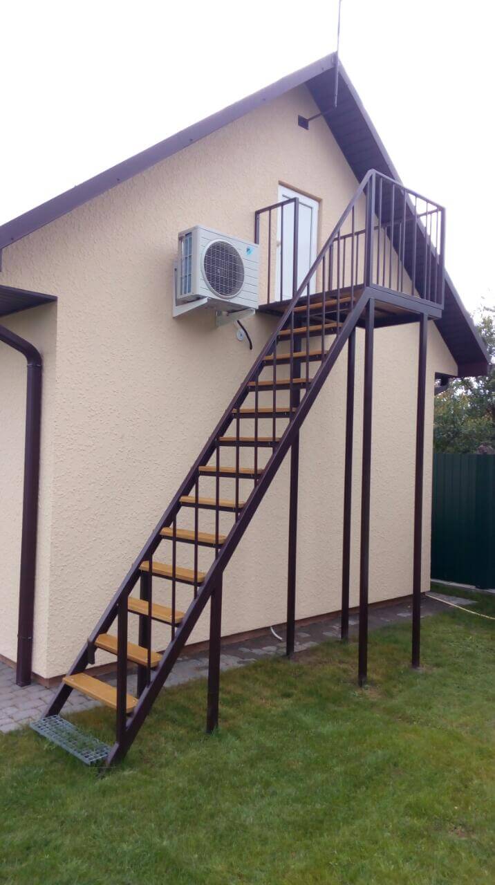 | Устанавливаются внутри здания, являются частью его интерьера. Конфигурация и тип такой конструкций зависит от площади и дизайна помещения. | Входят в обязательный список экстерьерных архитектурных сооружений. В целях противостояния коррозии обрабатываются специальными составами. Для производства таких лестниц чаще всего применяют нержавеющую сталь и черный металл. |
